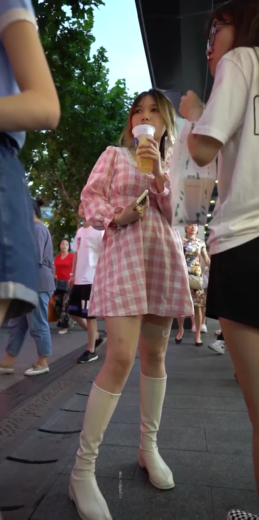 2048.vip-公交车站跟踪抄底连衣裙美女半透内隐约可以看到阴毛挺多的